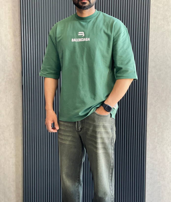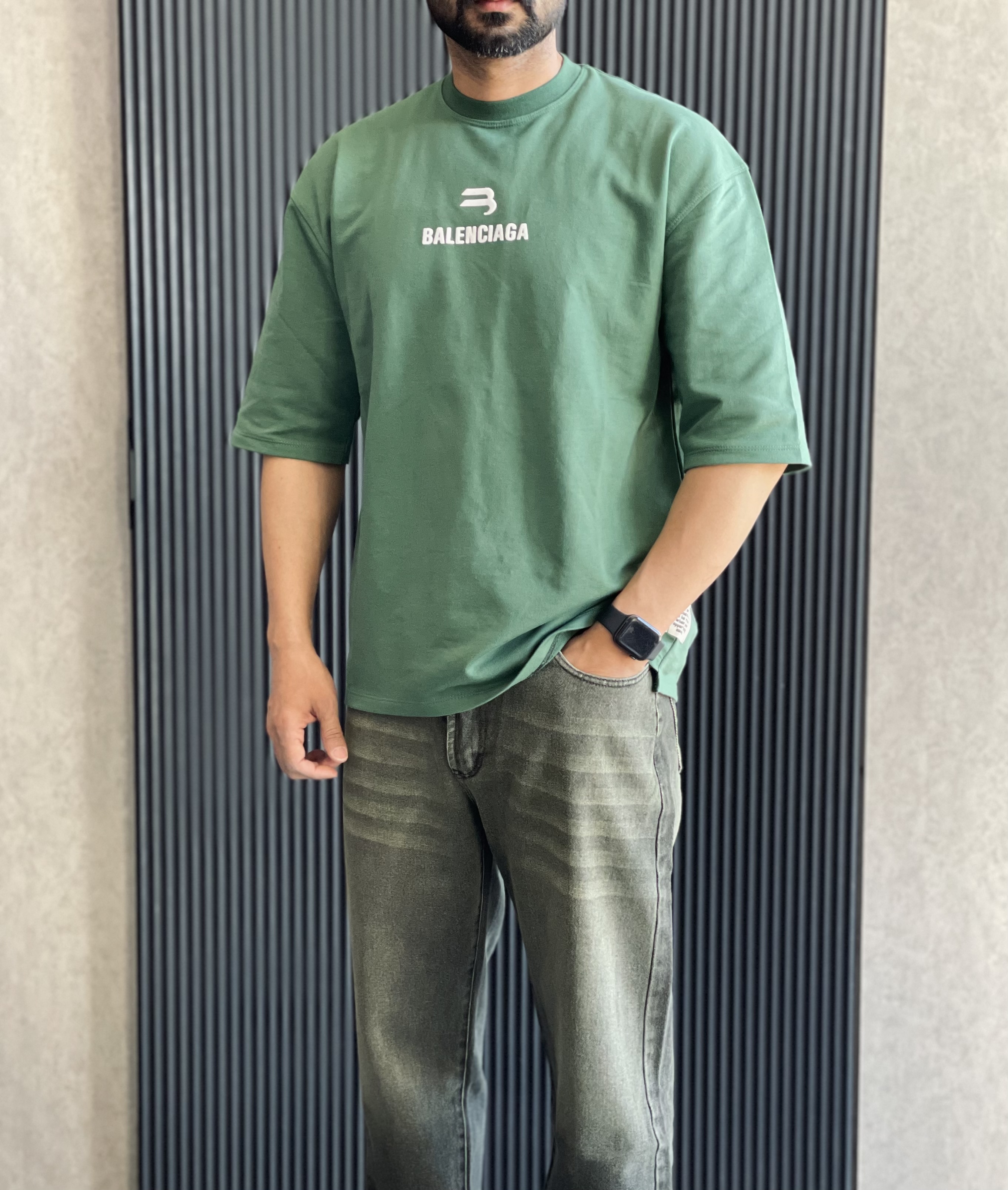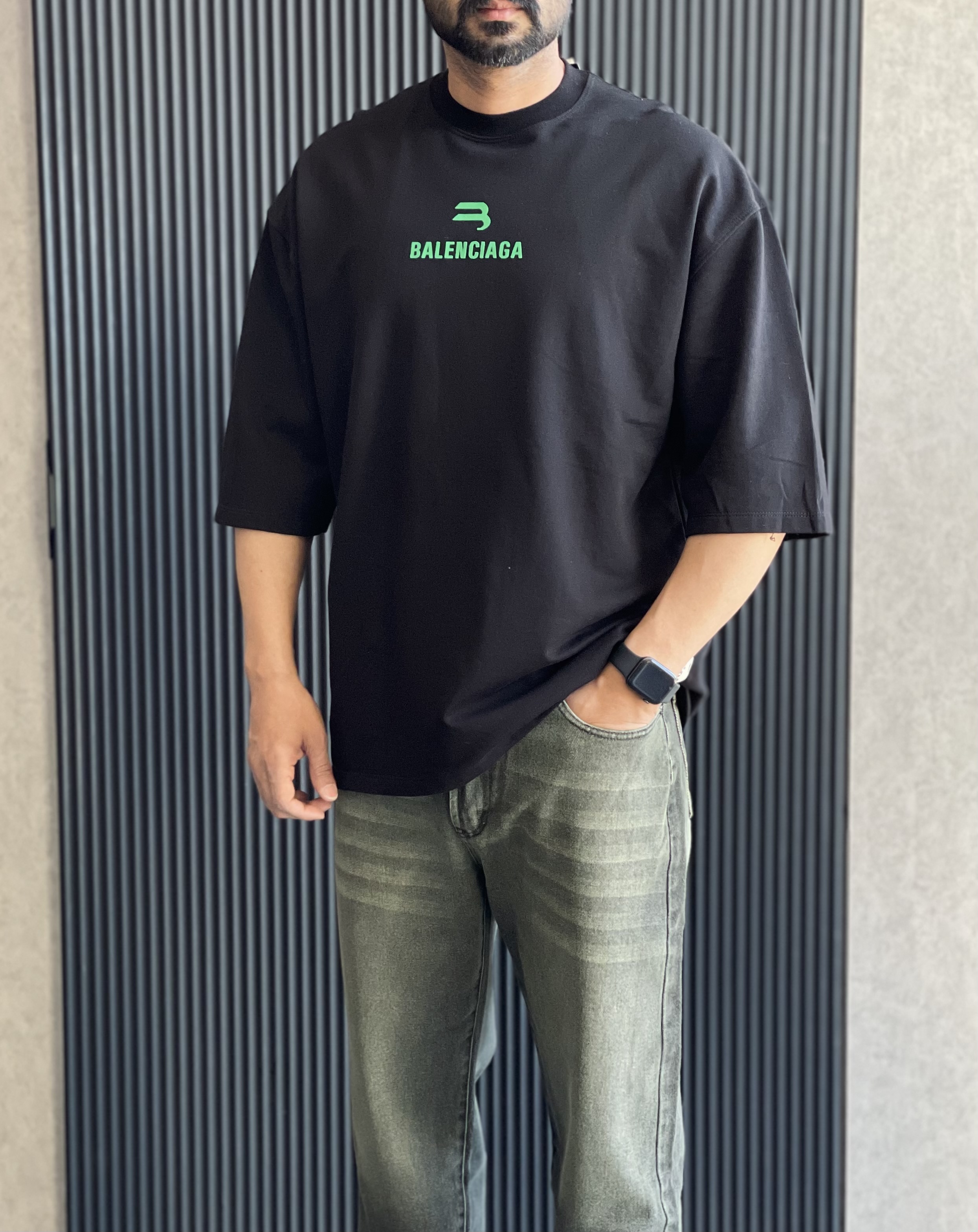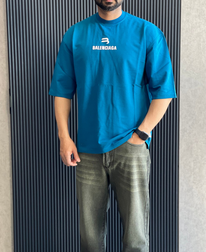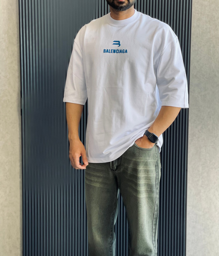 تیشرت قواره باکسی بالنسیاگا با چاپ ژله ای برجسته و دوخته شده با پارچه دونخ ماکان با دوخت و استایلی فوق العاده شیک و جذاب در ۴ رنگ بسیار کاربردی
