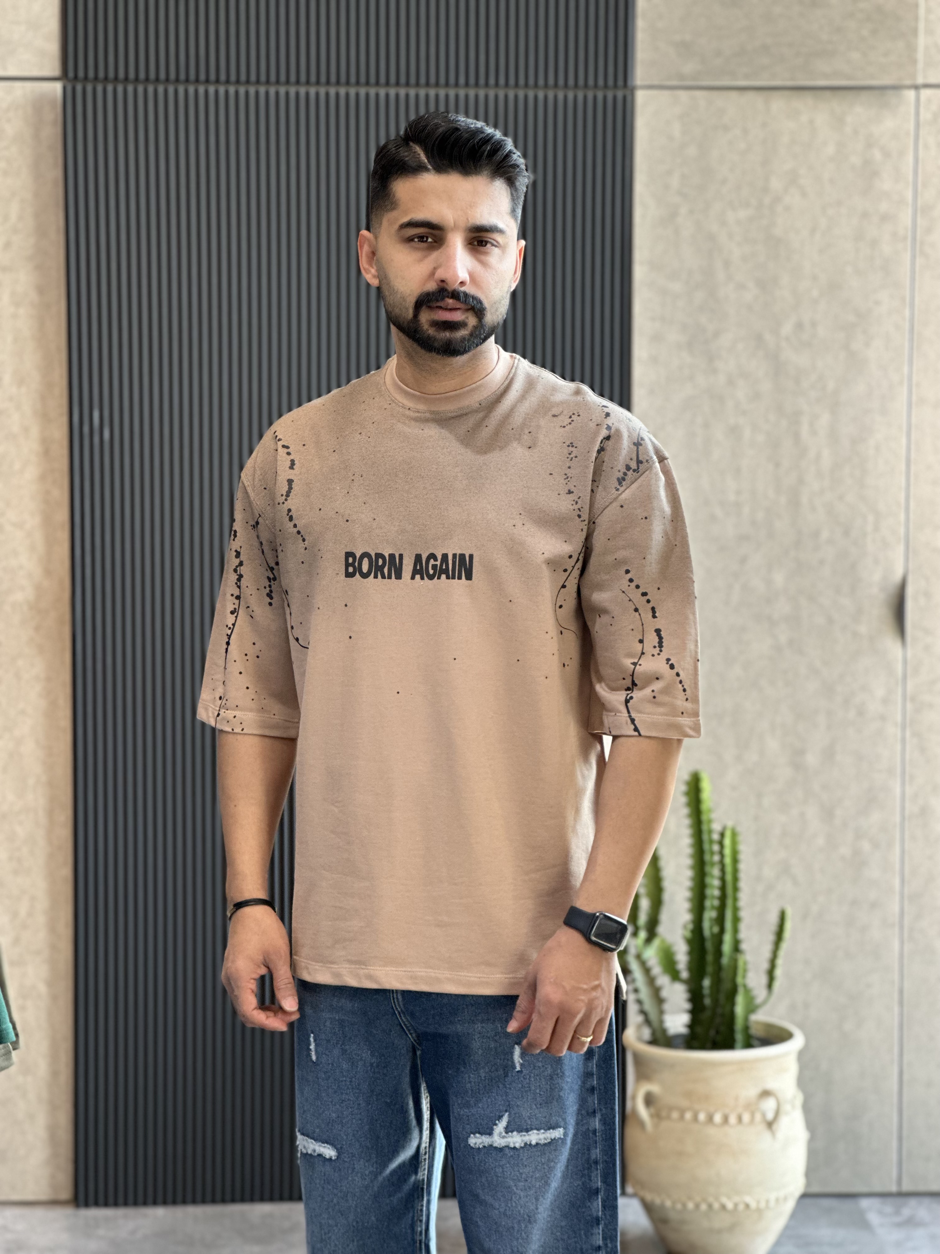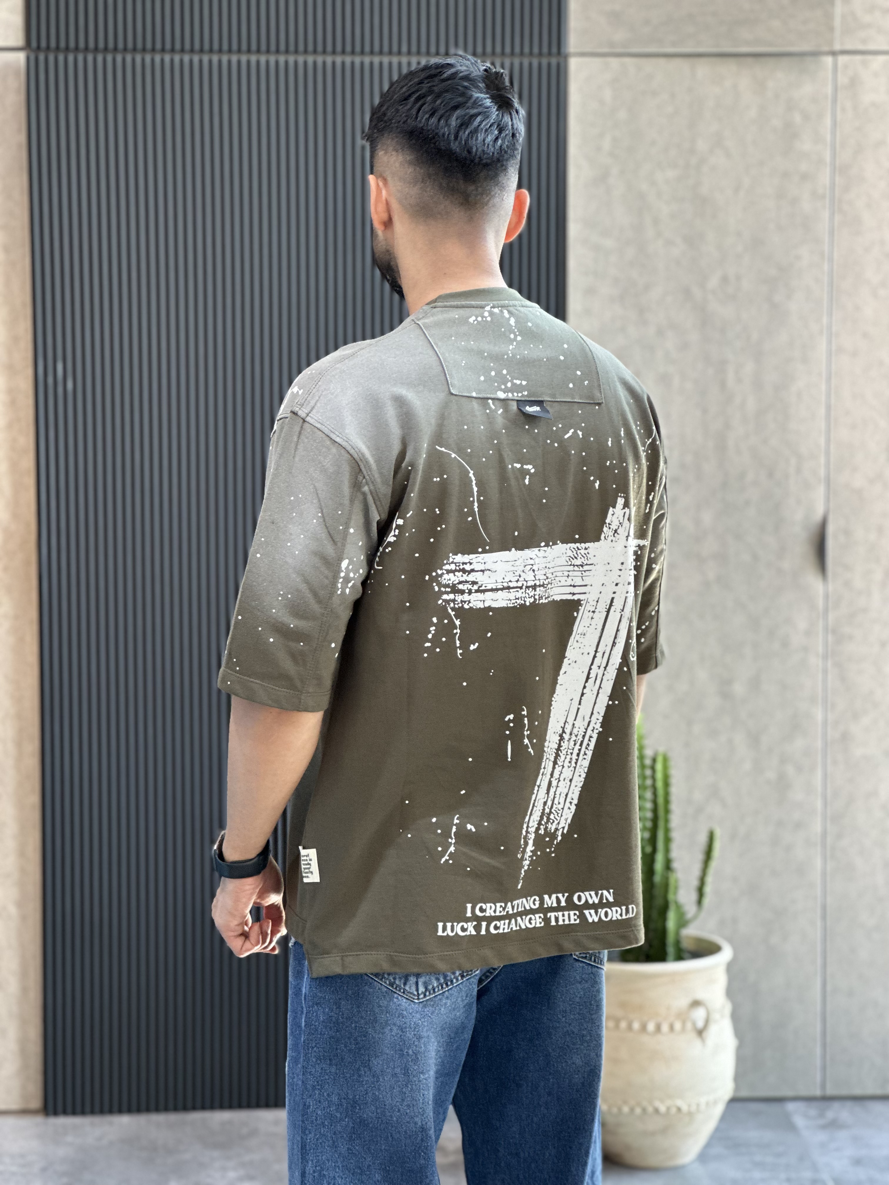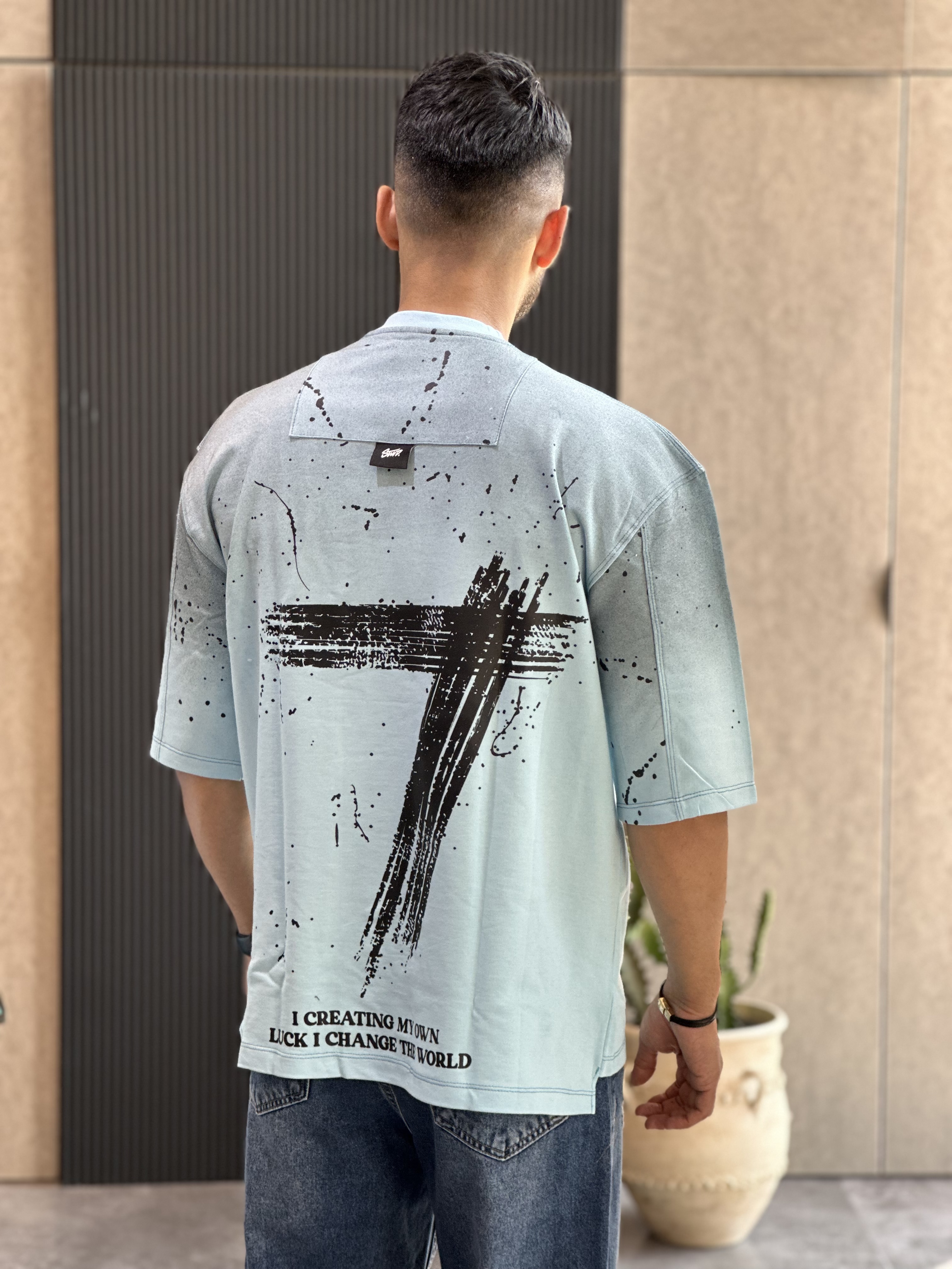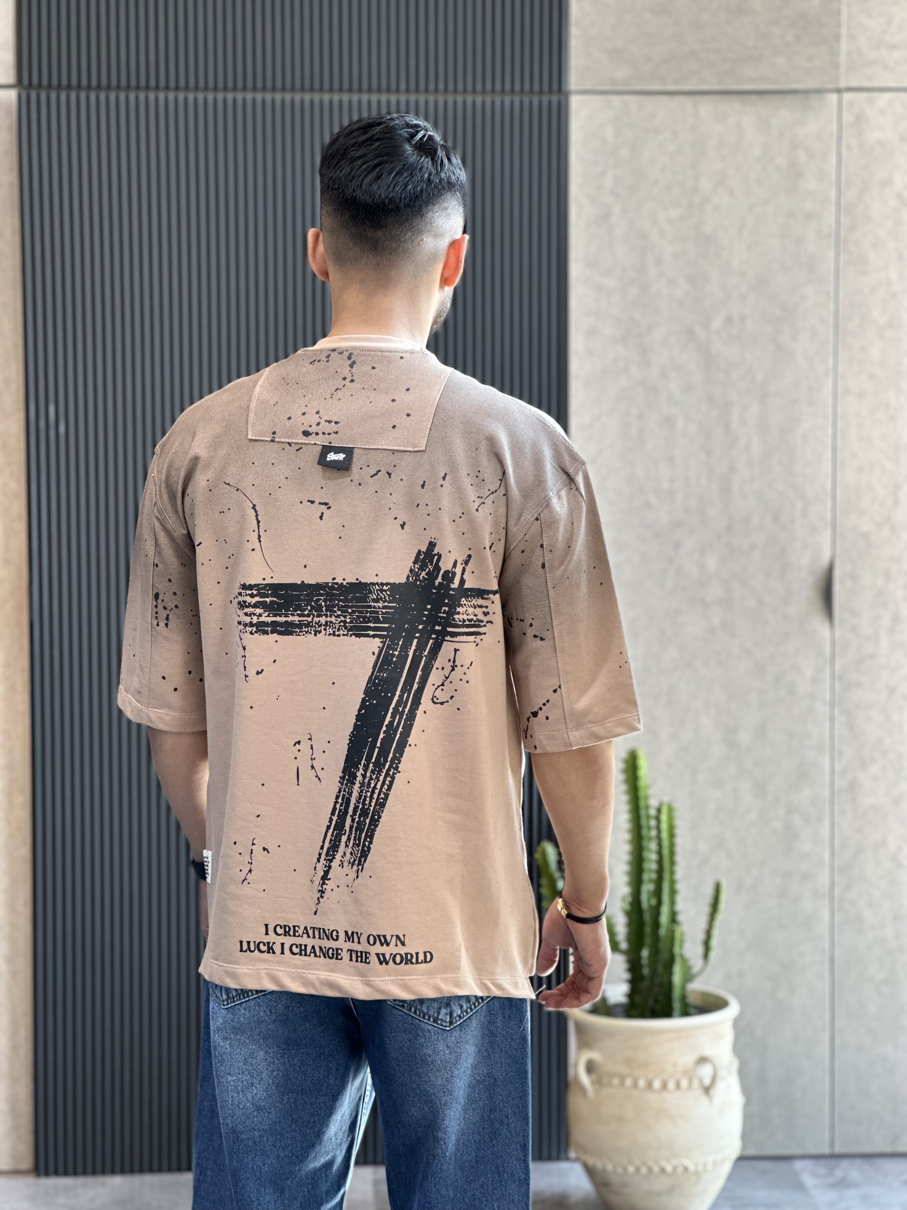 تیشرت قواره باکسی سنگشور شده با چاپ جذبی بسیار باکیفیت و پارچه دونخ ماکان گرم بالا با ایستایی بسیار عالی مناسب استایل کردن با شلوار جین بگ یا مام استایل