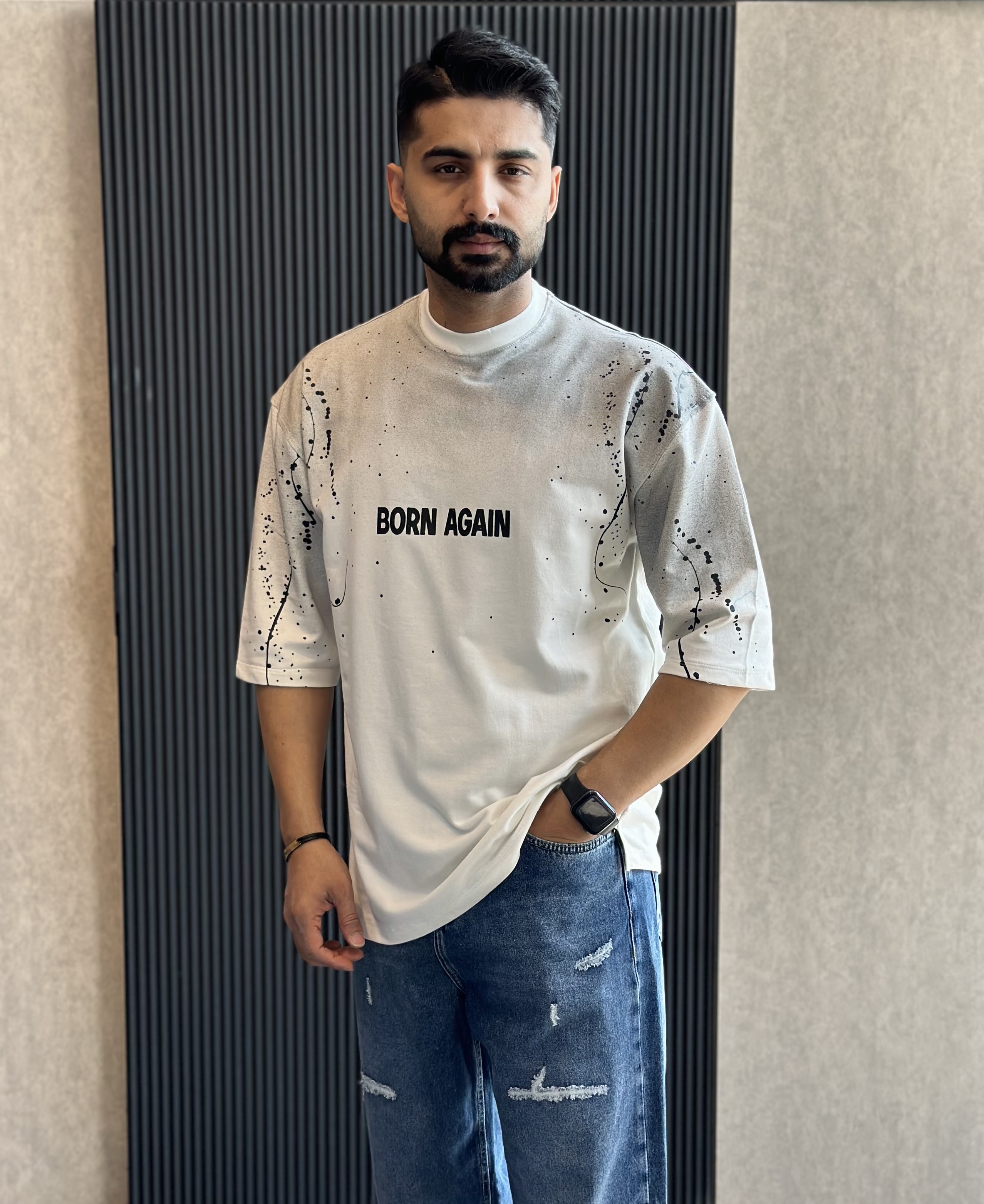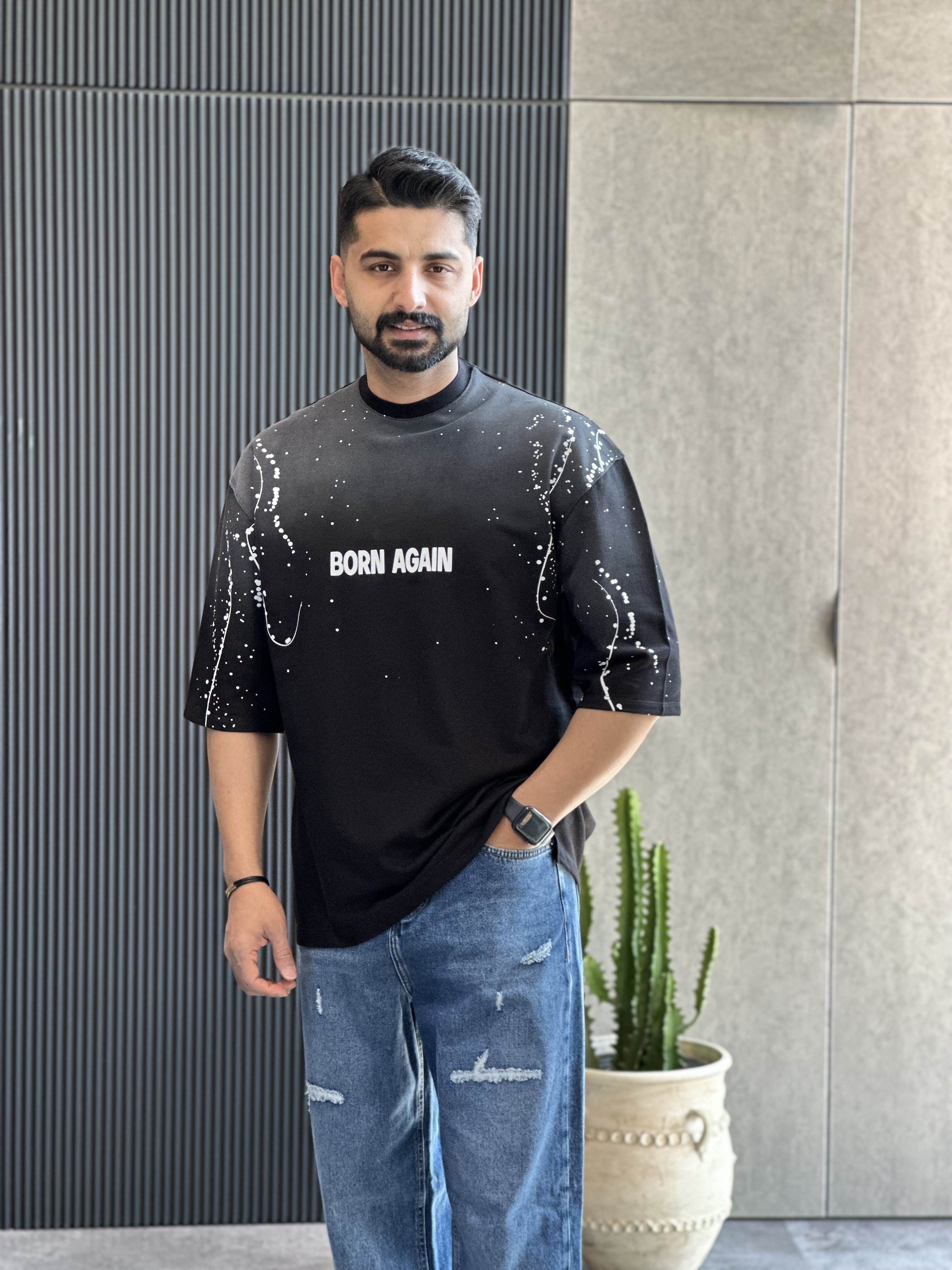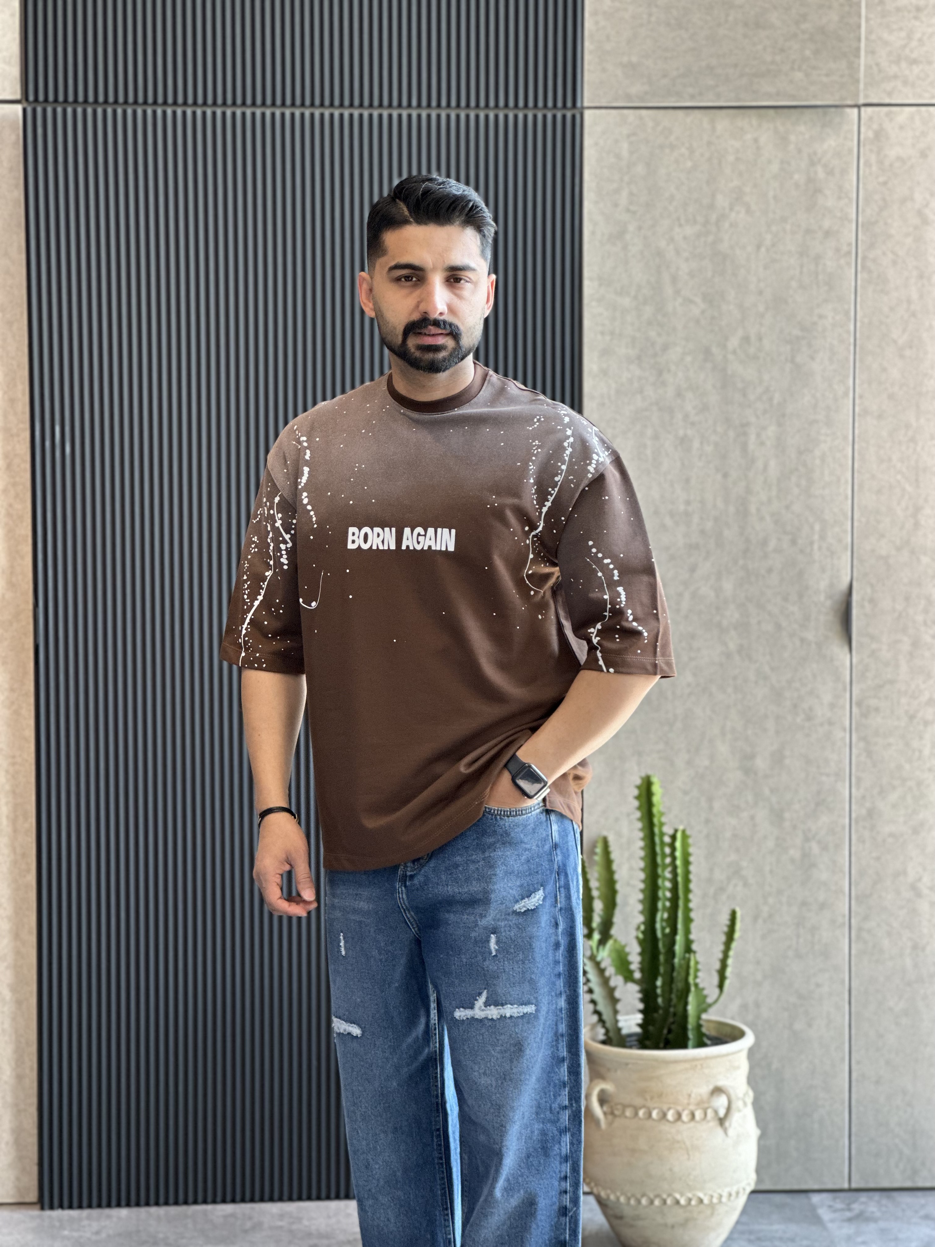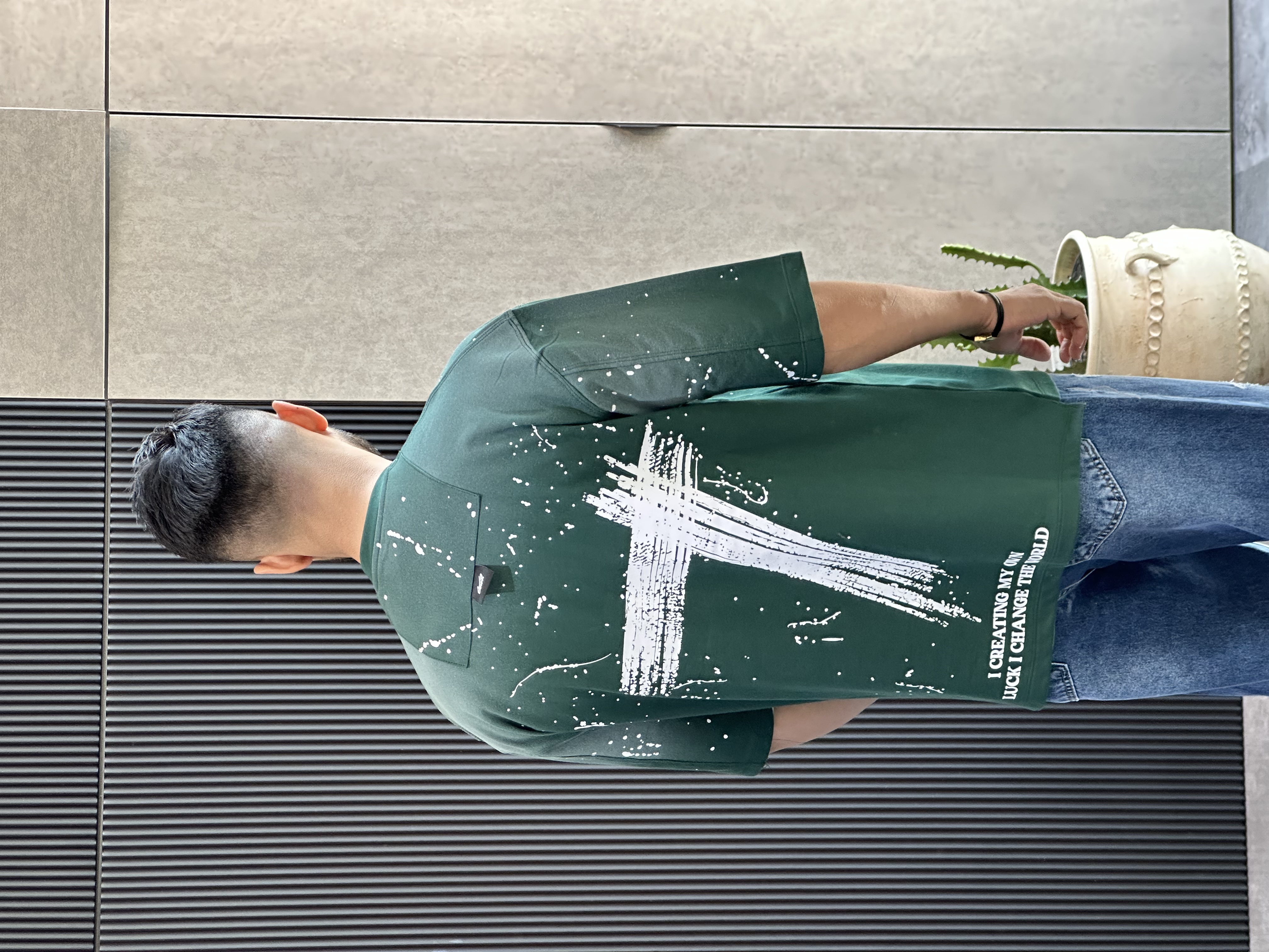 تیشرت قواره باکسی سنگشور شده با چاپ جذبی بسیار باکیفیت و پارچه دونخ ماکان گرم بالا با ایستایی بسیار عالی مناسب استایل کردن با شلوار جین بگ یا مام استایل