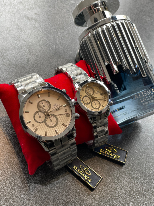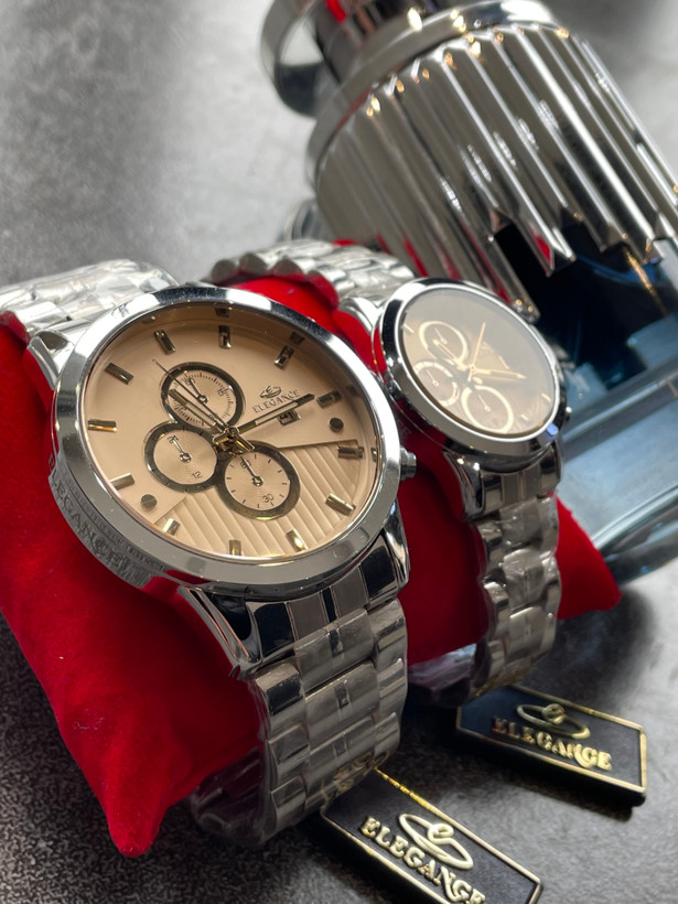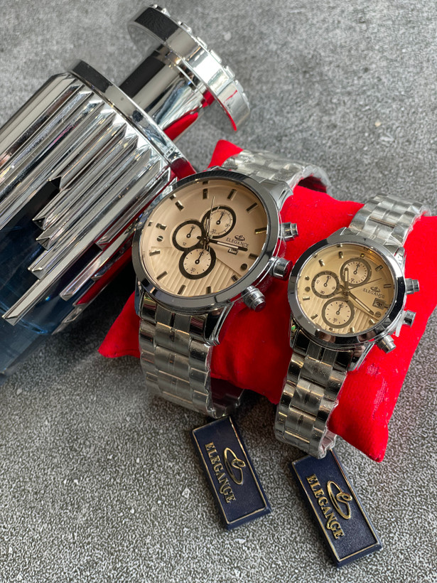ساعت ست زنانه و مردانه برند الگانس های کپی کاملا مشابه اصلی با بدنه رنگ ثابت و ضد حساسیت و دستبند استیل قفل دار بسیار با کیفیت انتخابی خوب برای هدیه مناسب های خاص.