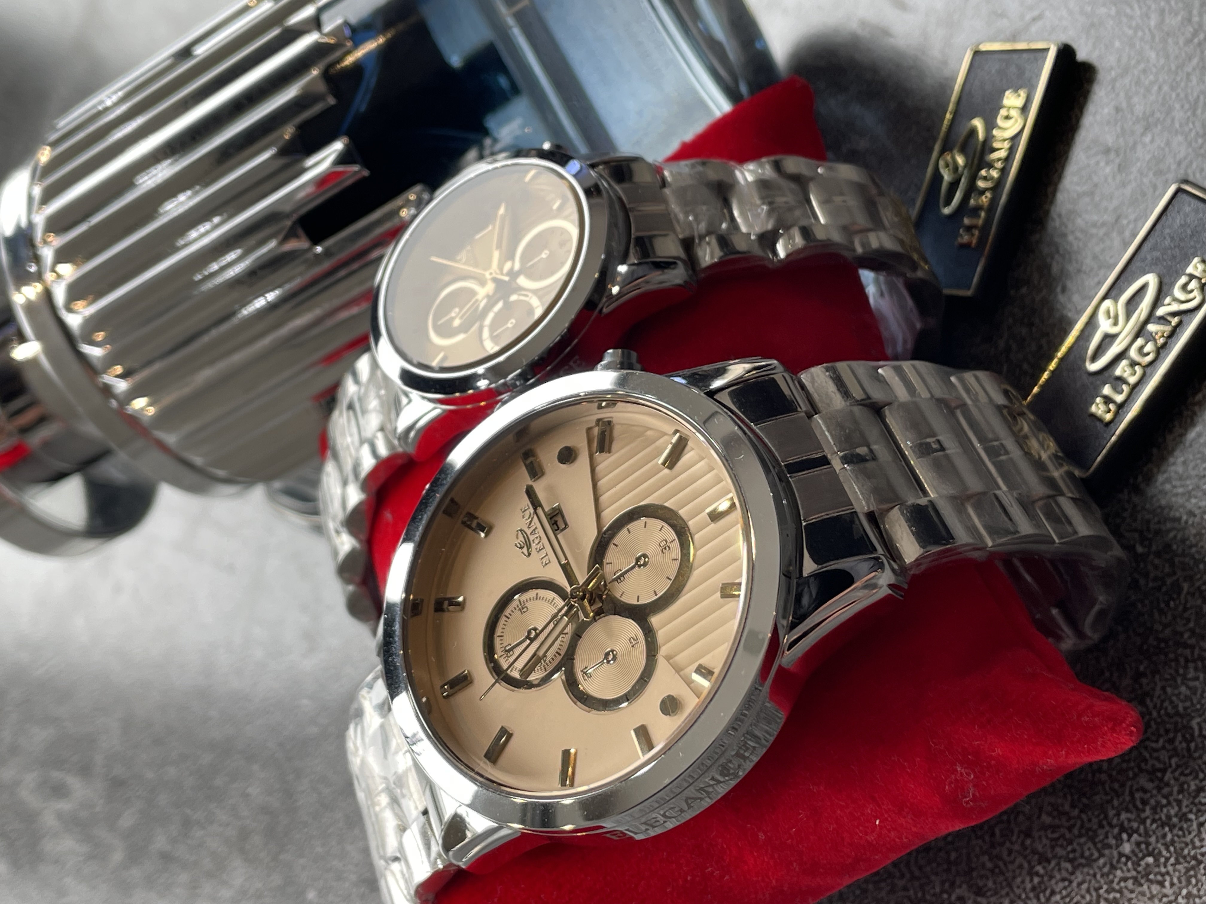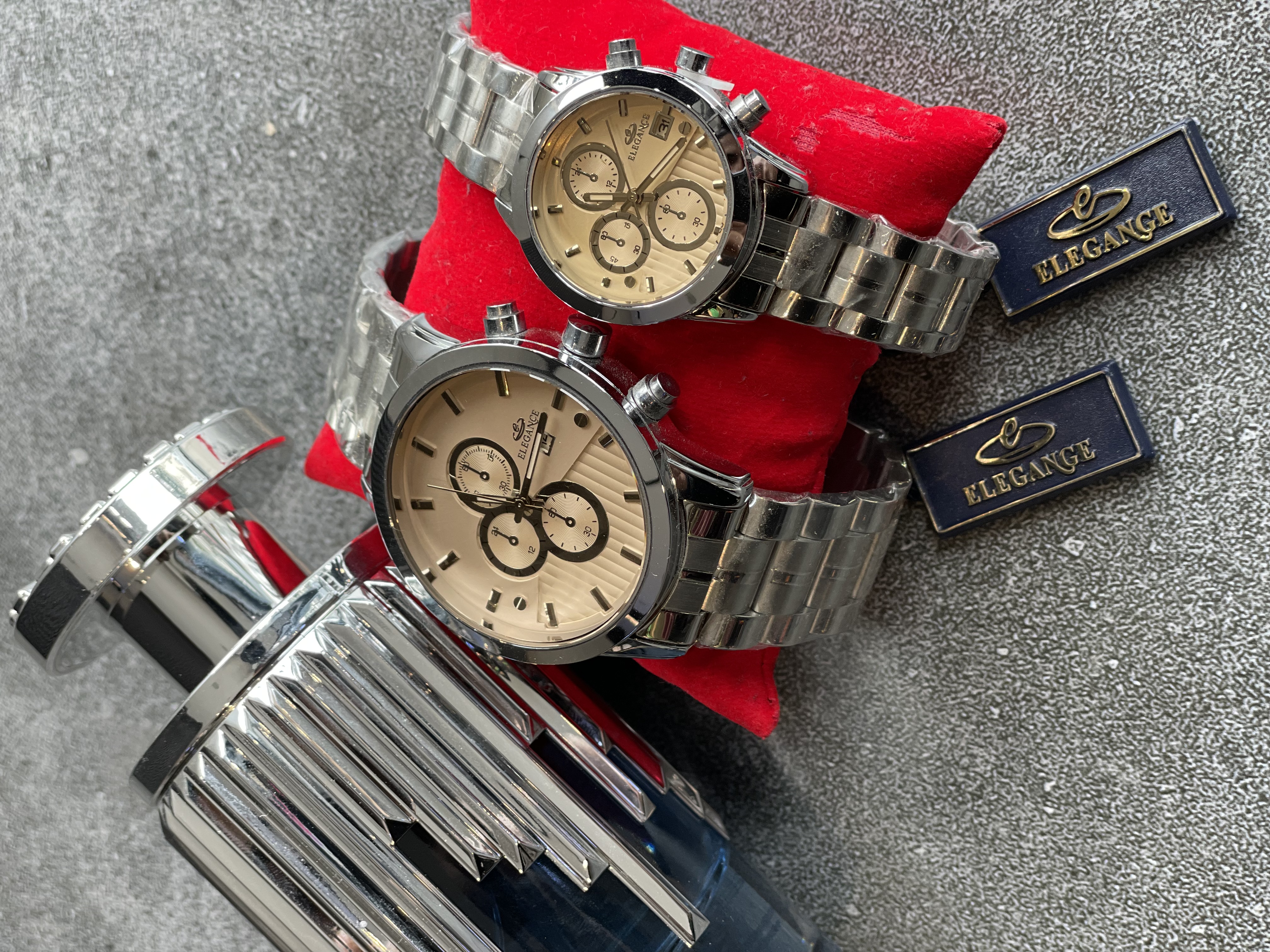 ساعت ست زنانه و مردانه برند الگانس های کپی کاملا مشابه اصلی با بدنه رنگ ثابت و ضد حساسیت و دستبند استیل قفل دار بسیار با کیفیت انتخابی خوب برای هدیه مناسب های خاص.
