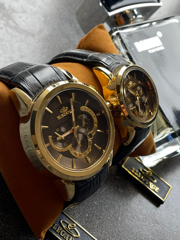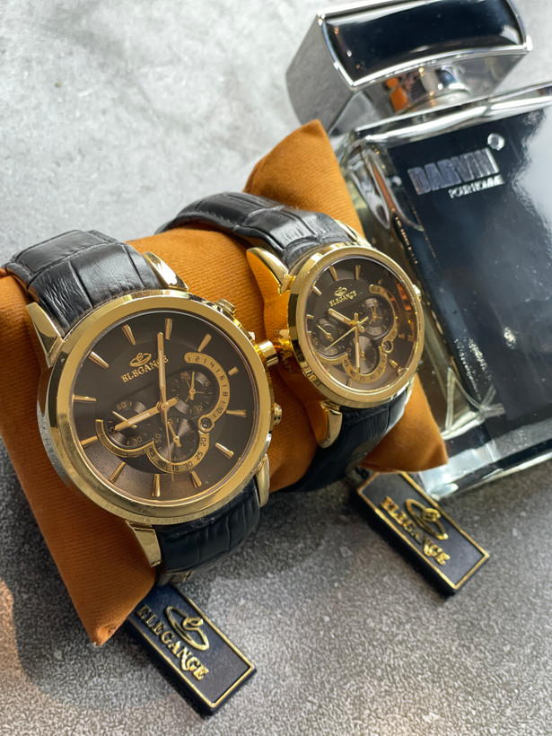ساعت ست زنانه و مردانه برند الگانس های کپی کاملا مشابه اصلی با بدنه رنگ ثابت و ضد حساسیت و دستبند چرم قفل دار بسیار با کیفیت انتخابی خوب برای هدیه مناسب های خاص.