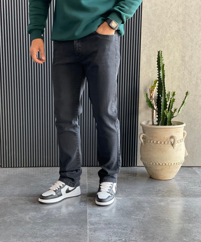 شلوار جین راسته پارچه کجراه رنگ ذغالی