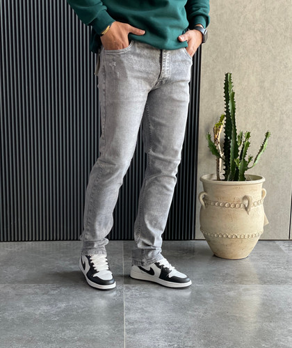 شلوارجین راسته رگولار طوسی روشن