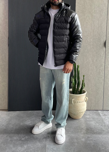 کاپشن ترکیبی چرم و پارچه