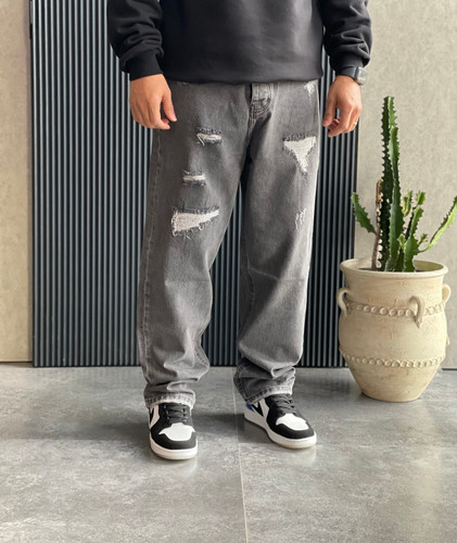 شلوار جین بگ استایل طوسی