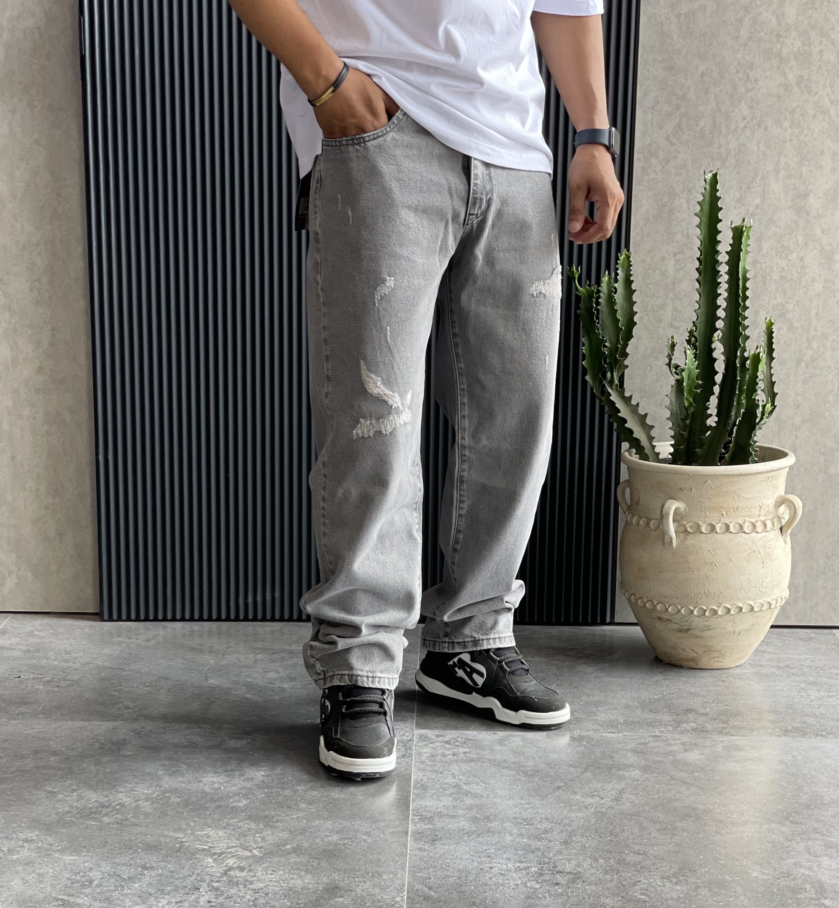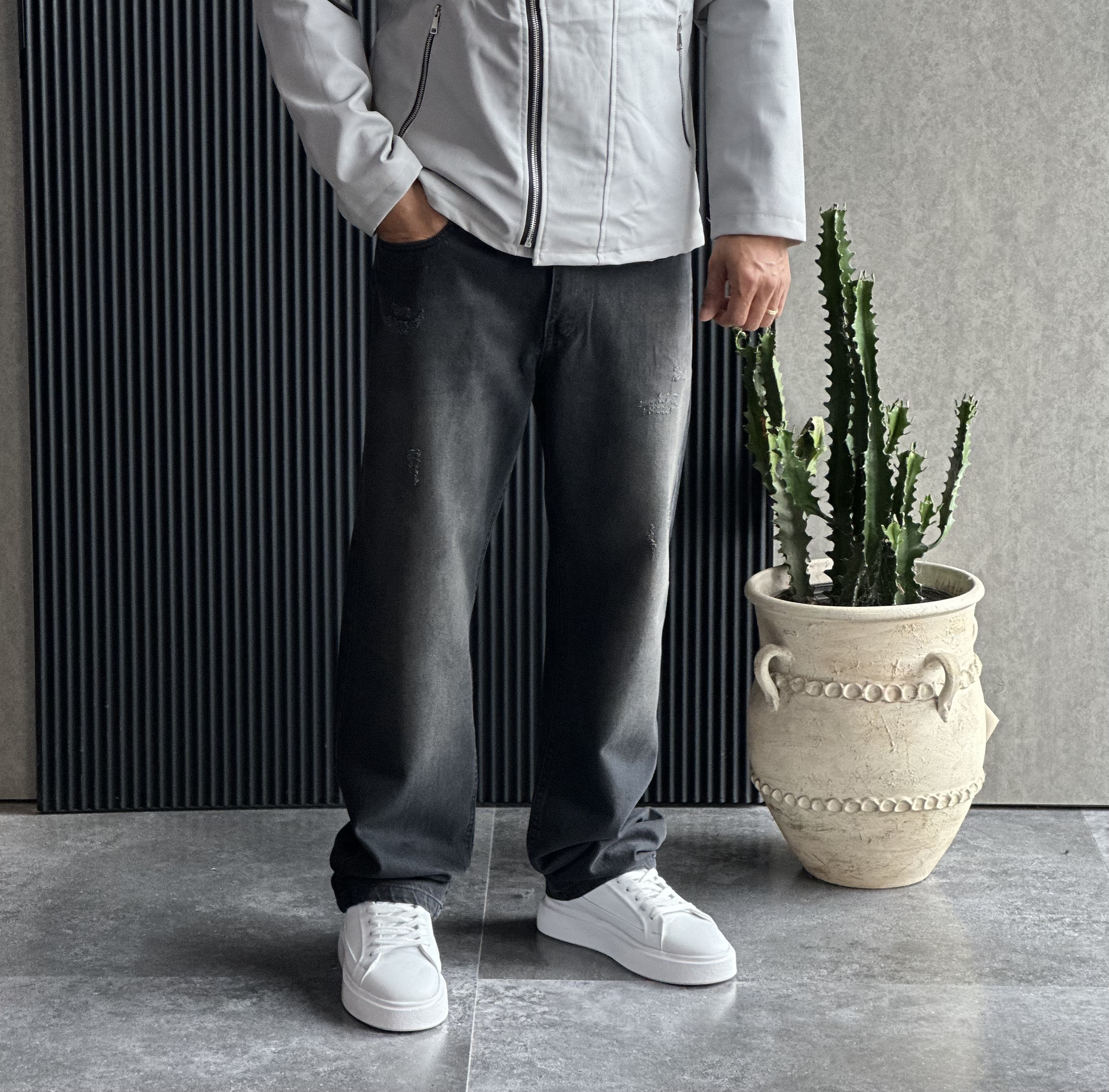 شلوارجین بگ استایل طوسی زاپدار