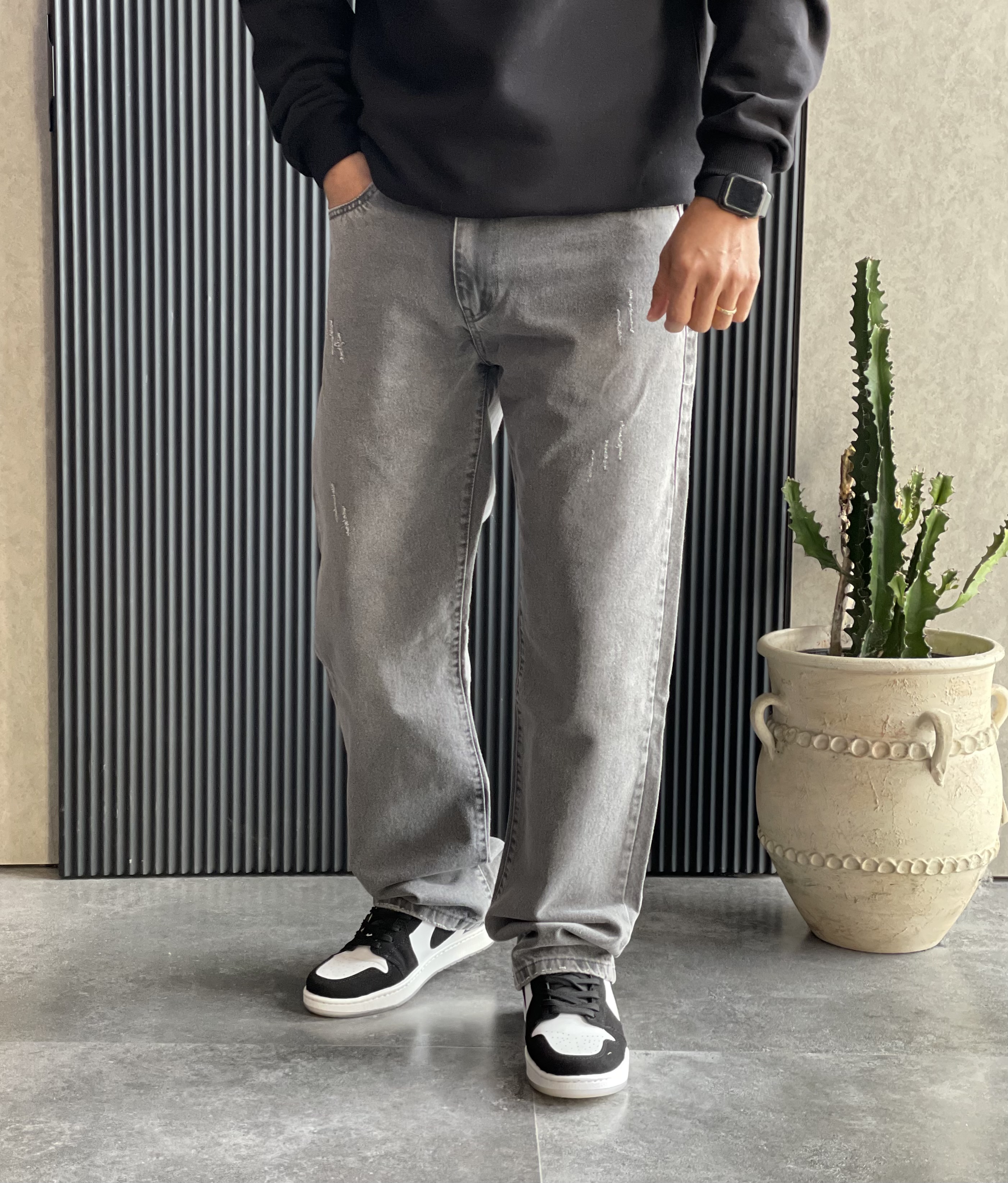 شلوار جین بگ استایل طوسی