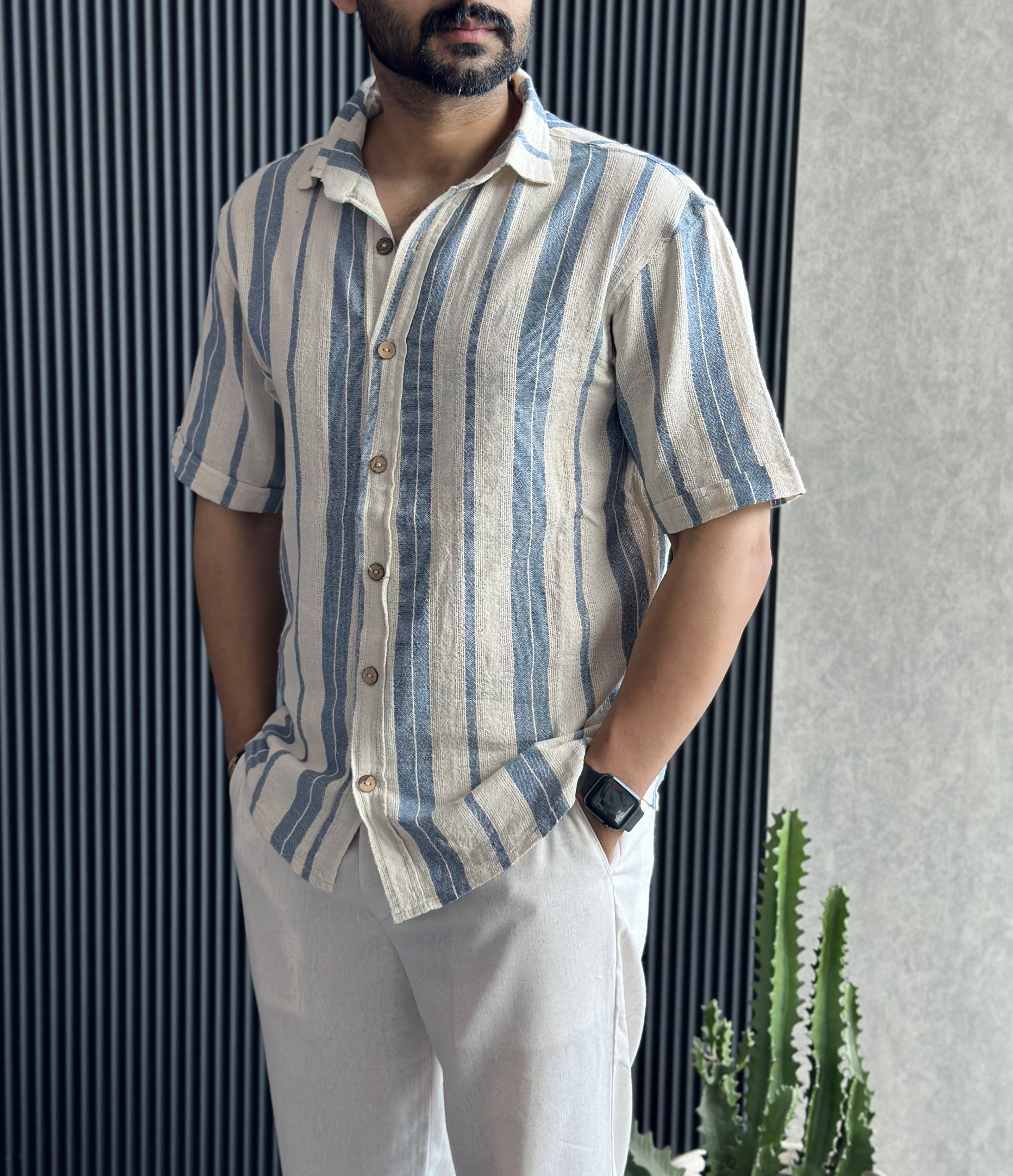 پیراهن لینن کنف قواره باکسی